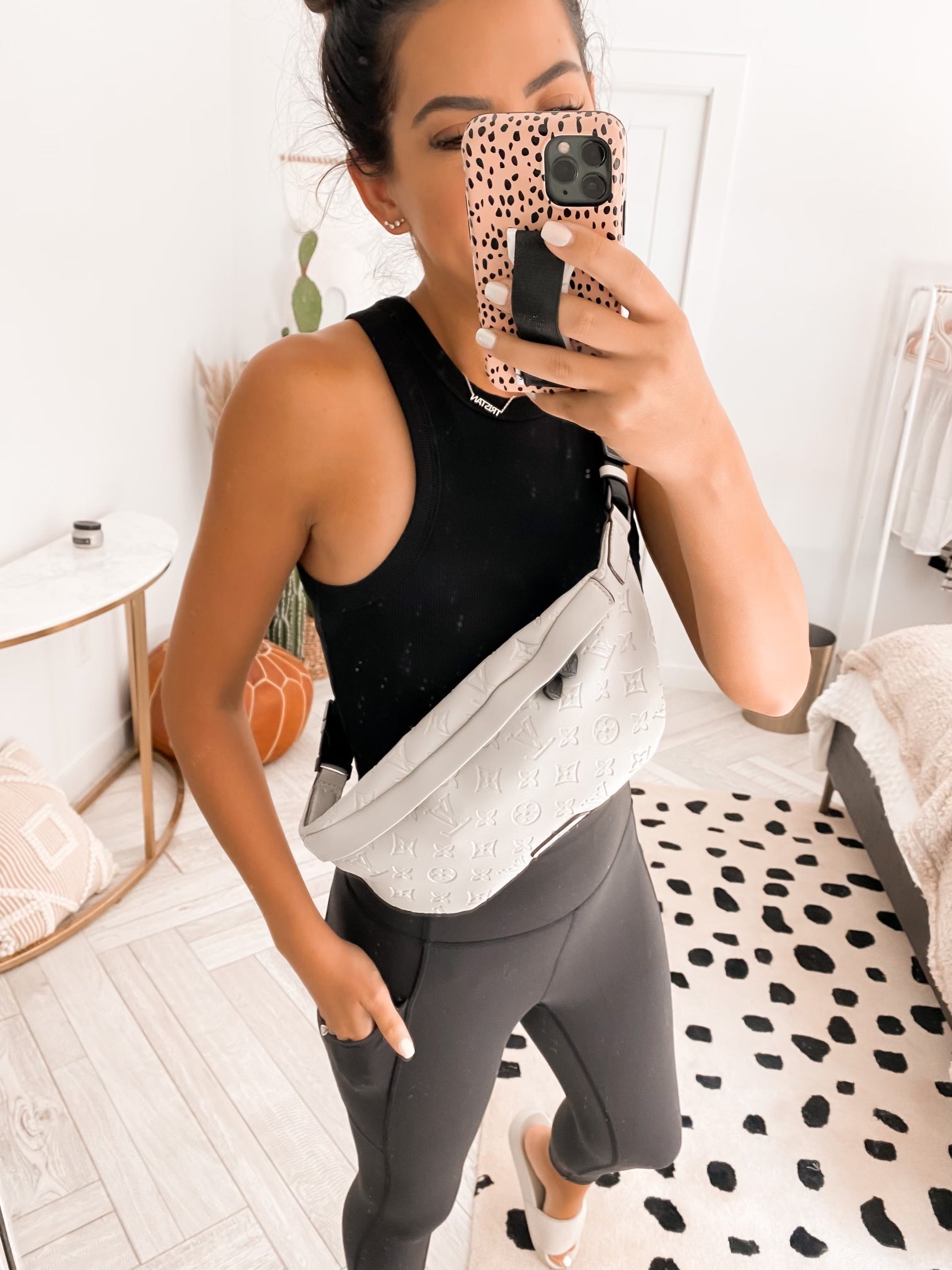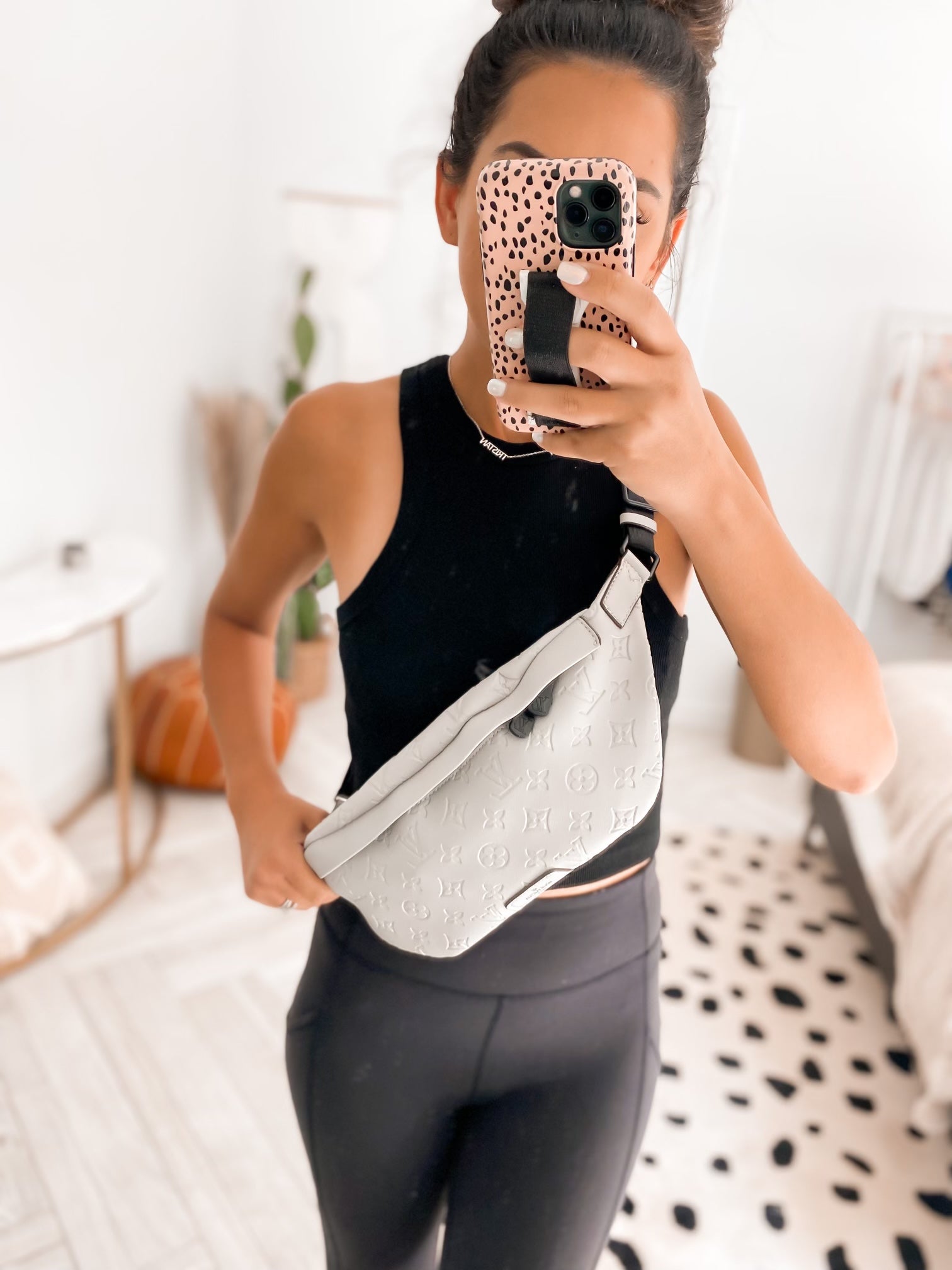 multiple pockets and a secure zipper closure, with the stylish hands-free way to carry small personal essentials!! Black adjustable strap with black matching zippers! Awesome quality!